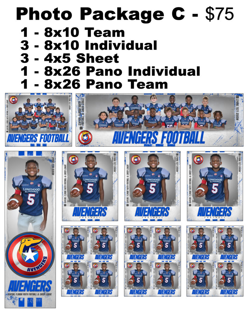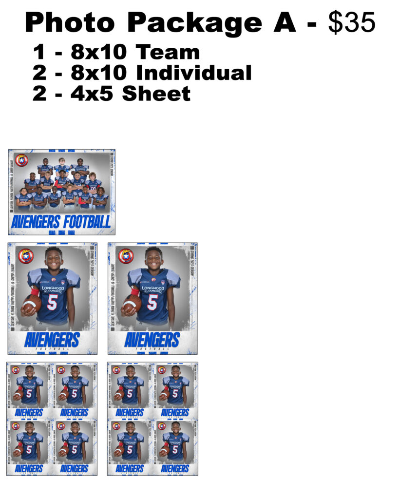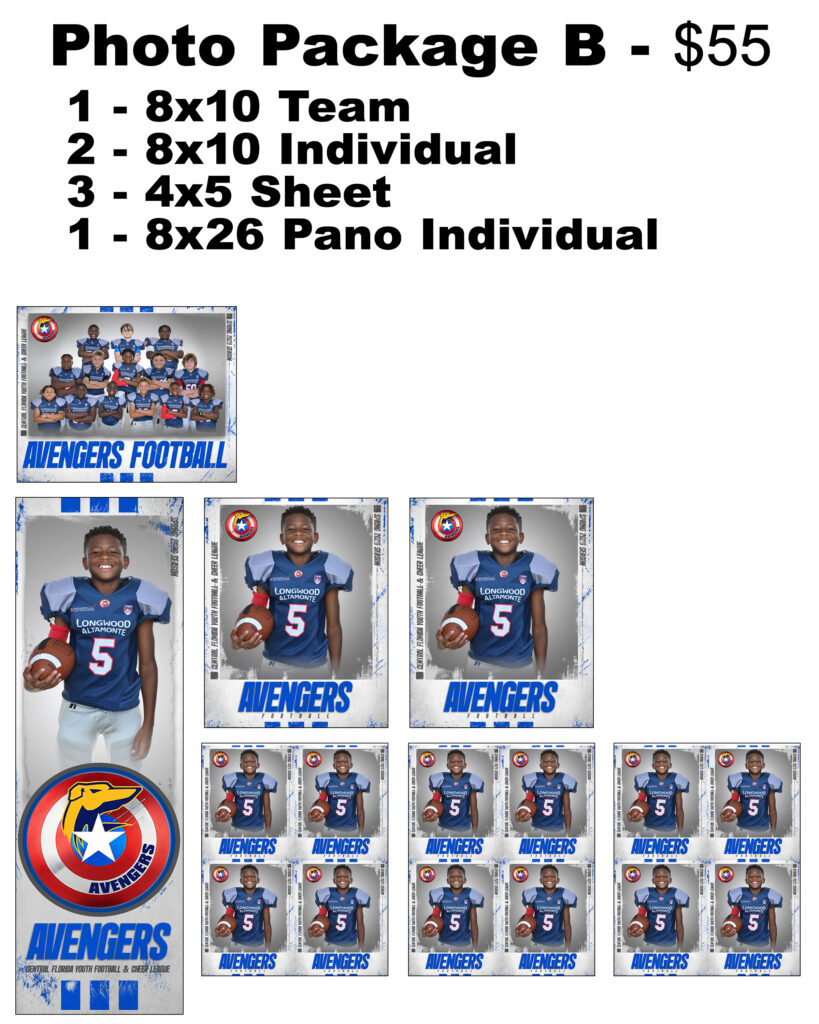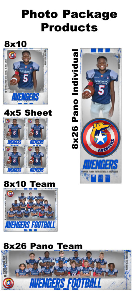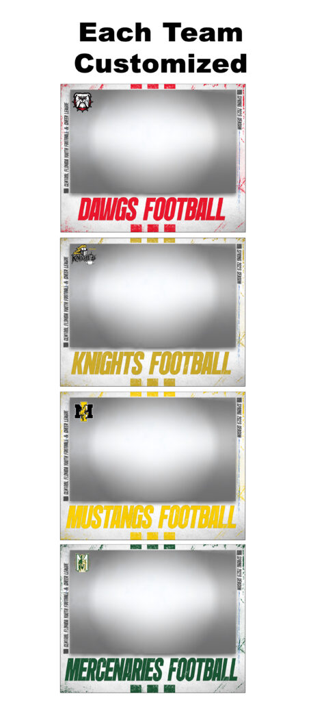 We customize each team - Color & Logo. Each football Athlete will have 2 photos taken. 1 for the team and 1 with a football for the individual.